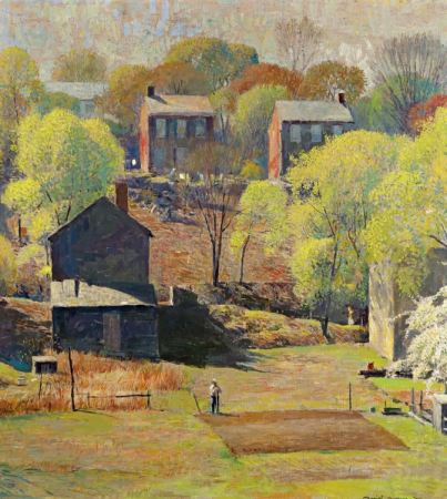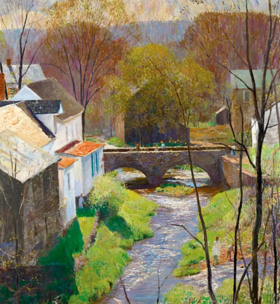 丹尼尔·加伯(Daniel Garber),1880年出生于美国印第安纳州的北曼彻斯特,后成长于宾夕法尼亚州的博克斯县。他的艺术生涯跨越了近一个世纪,直至1958年离世,为后世留下了丰富的视觉遗产。作为美国印象派的杰出代表,加伯的艺术成就不仅体现在他精湛的画技上,更在于他通过画作传达出的深刻情感和对自然的独特理解。