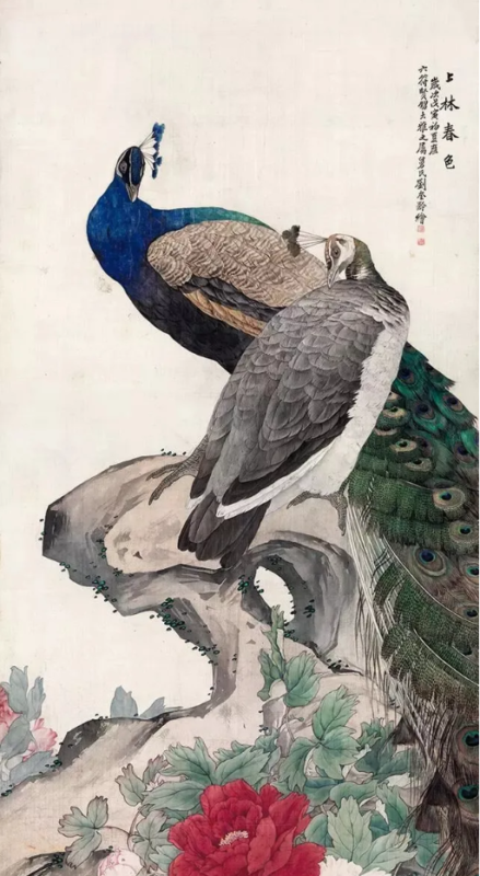 在善画的领域中,刘奎龄尤其擅长走兽飞禽、花鸟鱼虫的描绘。他的工笔作品细腻入微,生动逼真,令人叹为观止。其中,《上林春色图》更是他的代表作之一,该作品以其精湛的技艺和丰富的想象力,展现了春天的生机与活力,赢得了徐悲鸿等艺术大师的高度评价。