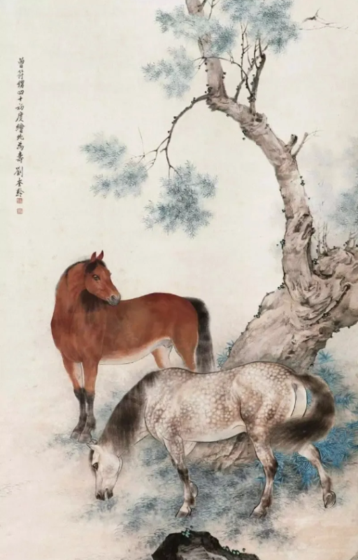 在艺术成就上,刘奎龄不仅精通动物画,更在人物、山水、花鸟等多个领域均有深厚造诣。他的画作既有中国传统文化的底蕴,又融入了西方绘画的精髓,展现出独特的艺术魅力。