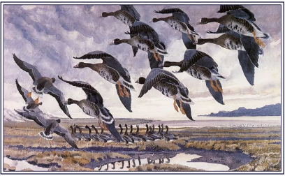Tunnicliffe的艺术领域广泛,涵盖了水彩画、蚀刻、木刻、刮板和油画等多种艺术形式。然而,无论采用何种媒介,他的作品始终围绕着自然环境和鸟类这一主题展开。他笔下的鸟类栩栩如生,不仅具有极高的精确性和准确性,更捕捉到了它们在自然界中的灵动与自由。这种对生命的深刻理解和细腻表达,使得他的作品超越了简单的科学描绘,成为了一种充满情感和生命力的艺术创造。