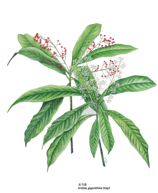 走进热带雨林的边缘,走马胎以其庞大的叶片和独特的生态位吸引着人们的目光。作为报春花科紫金牛属的一员,它广泛分布于中国南方及越南北部,是自然环境中不可或缺的组成部分。刘运笑的画作中,走马胎的生机盎然,展现了其在野外环境中的顽强生命力。