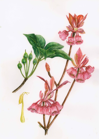 吊钟花,作为杜鹃花科的一员,以其独特的花形和分布范围,成为了中国南方地区一道亮丽的风景线。刘运笑的画作中,吊钟花的花朵如钟般悬挂,仿佛在诉说着岁月的故事,让人心生向往。
