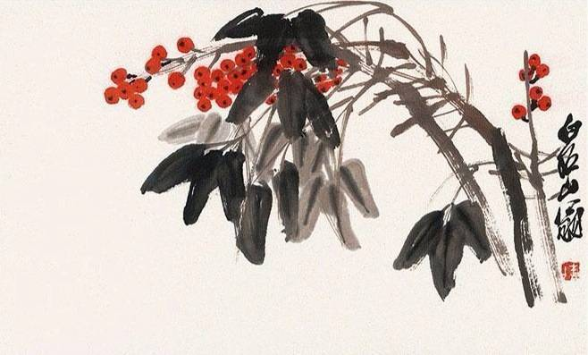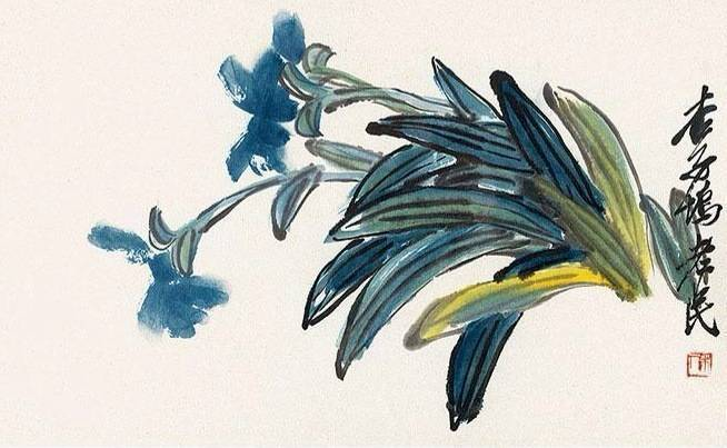 《兰花》则体现了齐白石力图摆脱工整细谨作画风格的决心。画面仅寥寥数笔便写出了兰花的神韵,用笔劲健,设色丰富微妙,流露出强烈的文人审美趣味。