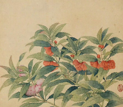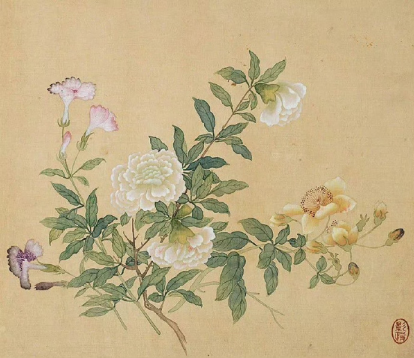 《花卉册页》是柳如是绘画艺术的重要代表作之一,创作于崇祯甲戌(1634年)秋月,时值她十六岁的青春年华,正是她成名之际。册页共十二开,每开绘一种花卉,共计十二种,展现了柳如是对花卉的深厚情感和细腻观察。这些花卉在她的笔下,设色淡雅而极尽色相的变化,构图在平易中透露出隽永之味。每种花卉形象真实而绰约多姿,仿佛佳人相聚、粉面相映,美不胜收。