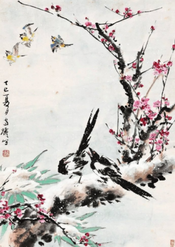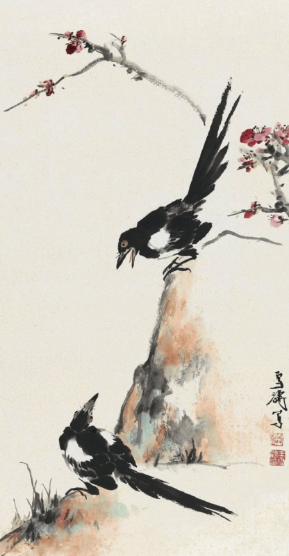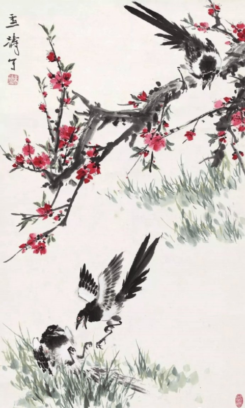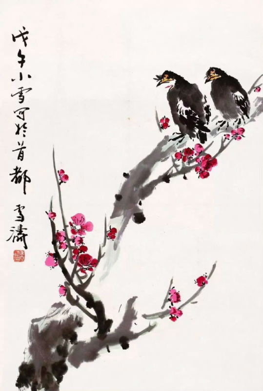 在中国传统绘画中,花鸟画以其细腻的笔触和丰富的寓意,历来备受文人墨客的青睐。而在花鸟画中,喜鹊作为常见的题材之一,更是因其象征喜庆、吉祥、幸福和好运等美好寓意,成为历代画家竞相描绘的对象。而在现代中国花鸟画坛上,王雪涛无疑是最为杰出的代表之一。