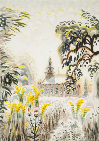 在他的城市景观作品中,比奇菲尔德同样展现出了非凡的创造力。他笔下的城市不再是冷冰冰的钢筋水泥森林,而是充满了生机和活力的梦幻之地。他通过巧妙的色彩搭配和光影处理,使得城市的喧嚣与繁忙在他的画作中变得柔和而宁静。在他的画中,人们可以感受到城市的另一面——那个被忽略的、充满诗意和浪漫的城市。