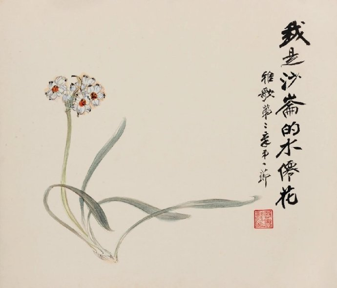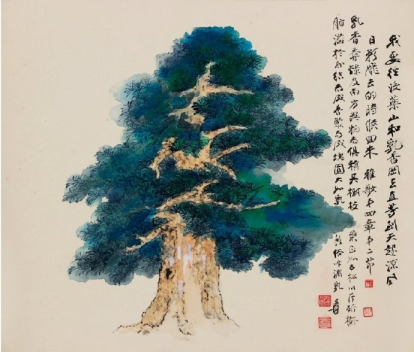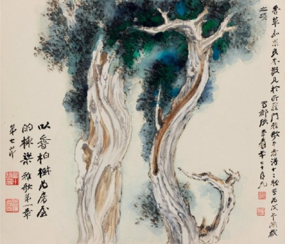 张大千(1899-1983)的《雅歌•香草嘉果良木册》是他晚年的杰作之一,创作于1977年年底,当时他将近八十岁高龄。这部作品是张大千应民国政要张群邀请而作的山水花卉册页,以《圣经-雅歌》第一、第二、第四、第七章节的圣经内容为题材,共十二页,分别描绘了水仙花、青草、沉香、百合花、菖蒲、石榴、桂树、乳香树、苹果、松树、柏树、葡萄等十二种花木,每一页都配以相应的经文出处。