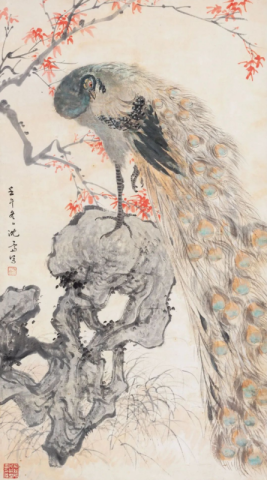 沈一斋 秋叶孔雀
