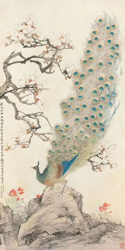 沈一斋,以字行,又号云台山人,江苏灌云人氏,却客居繁华的上海,以卖画为生。关于他的生年,旧有1880年和1891年两种说法。然而,通过考证朵云轩旧藏的《苍松孔雀图》上的款识“庚寅春七一叟沈一斋”,我们可以确定沈一斋的生年应为1880年。