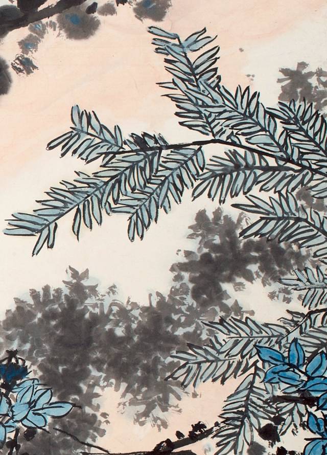 潘天寿先生的笔墨,苍劲有力,却又充满着诗意。墨色的浓淡变化,并不拘泥于传统的空间表现,而是着重于块面层次的区分,使画面更具立体感和力量感。那交错于巨石之外的墨叶,每一笔都饱含着情感,仿佛能感受到画家作画时的呼吸与心跳。