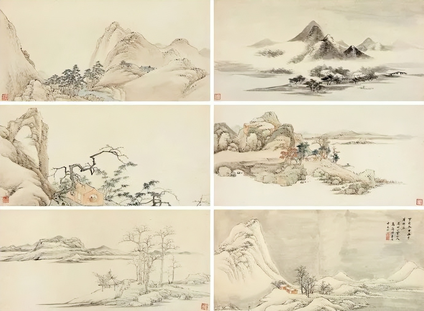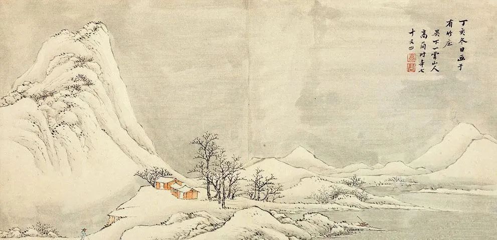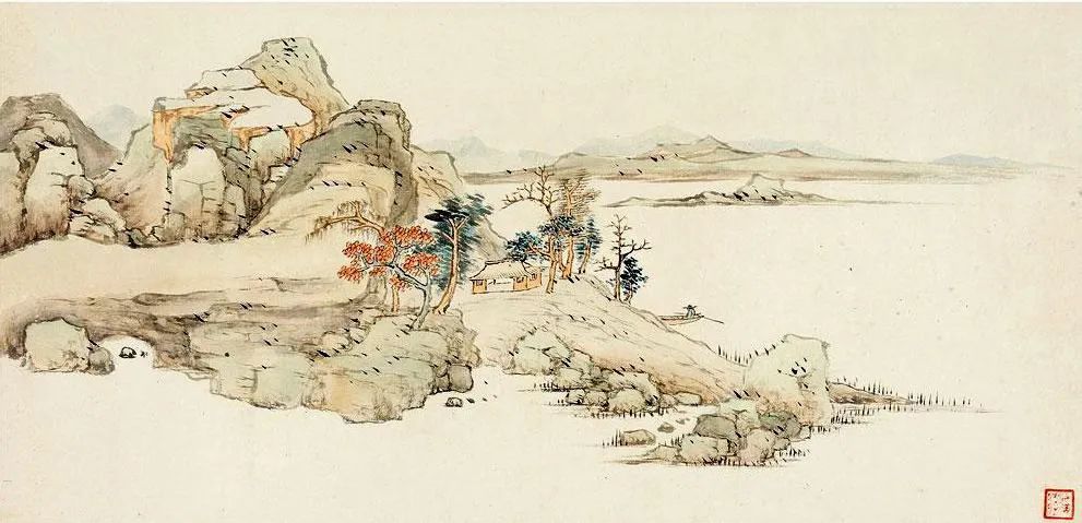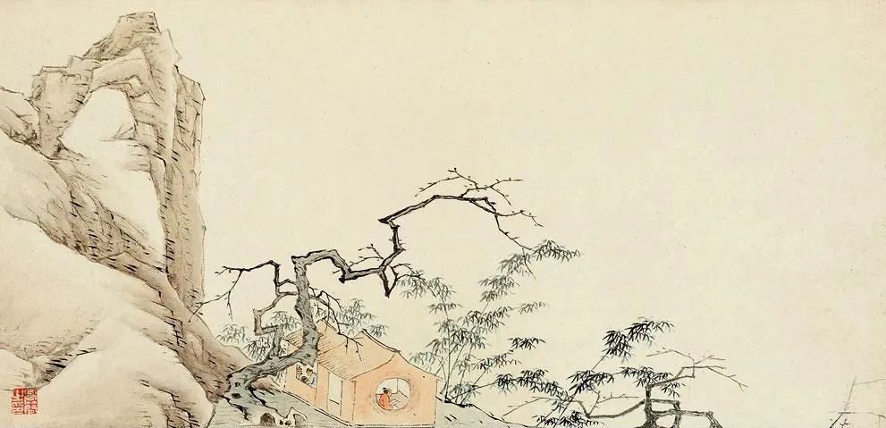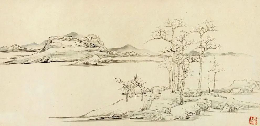 他平生最爱创作小品,尤擅梅花书屋,冷隽可珍。而他那一组《写景山水册》,更是尺幅虽小,却意境深远。笔墨简淡清臞,布局却深稳,透着一股清巧可爱的风味,令人爱不释手。那脱尽纵横习气的笔触,仿佛在诉说着画家内心的宁静与淡泊。