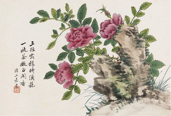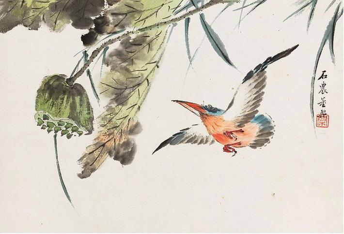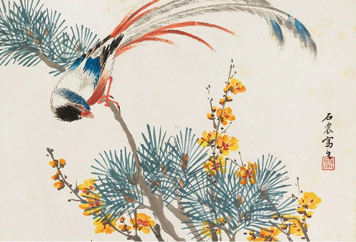 董棨的笔触轻盈而灵动,设色明丽而清新。他并非简单地描摹自然,而是将自己的情感融入其中,赋予了花鸟以生命和灵魂。他笔下的花鸟,既有工笔的细致,又有写意的洒脱,兼工带写,展现了其高超的艺术造诣。