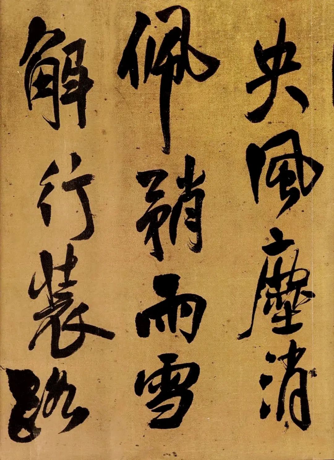 画卷展开,近三米的长卷,气势磅礴。米黄色的绢本,晕染着时间的痕迹,更衬得墨色淋漓,浓淡相宜。王铎五十一岁,正值创作的盛年,笔力雄健,如“狮子扑象”,却又并非一味蛮横,而是刚柔并济,充满了控制力。