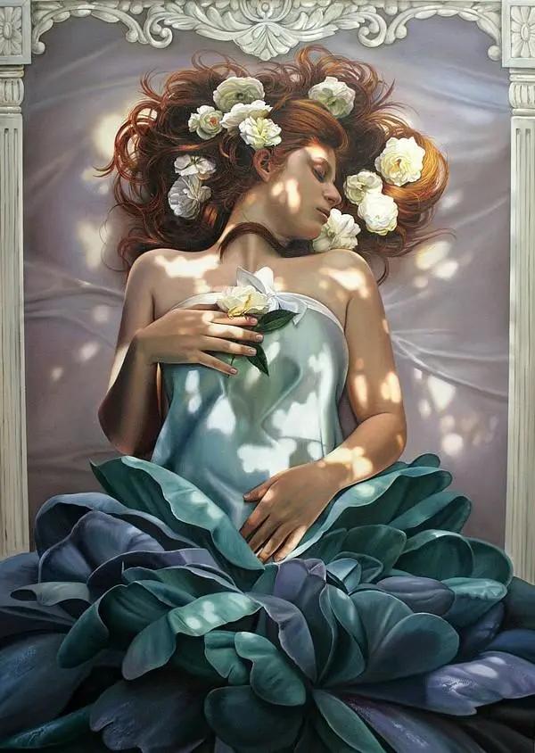 不同于冷军等超写实主义大师着力于人物的刻画,Christiane Vleugels的世界更加广阔,也更加静谧。她笔下的动植物并非简单的描摹对象,而是拥有灵魂的生命体。它们静静地存在于画面之中,仿佛时间也在此凝固,等待着观者去发现它们蕴藏的秘密。