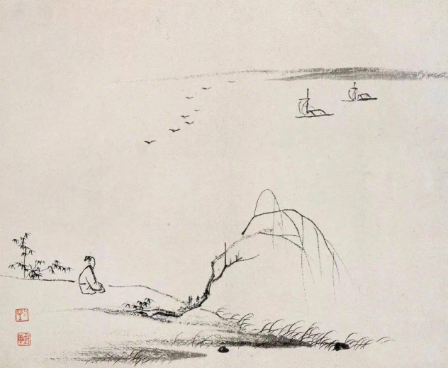 当欣赏他的《高士泛舟》时,仿佛能听到溪水潺潺,看到一位高士悠然地坐在舟上,任由小舟在山水间飘荡。那轻描淡写的几笔,勾勒出的不仅是山水,更是一种超脱尘世的意境。他的《行旅图》则让人感受到旅途的艰辛与美好,山间的小路蜿蜒曲折,行者虽未被细致描绘,却仿佛能感受到他们对远方的向往与追求。而在《山居钓鱼图》中,他用简洁的笔触,描绘出一位垂钓者静坐水边的画面,周围是淡淡的山水,宁静而悠远,仿佛时间在此刻凝固。
