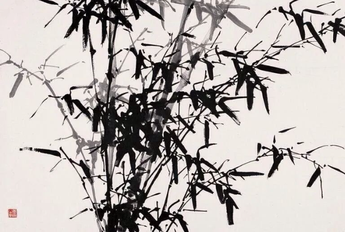 董寿平先生自己也曾说:“我的竹自信是前无古人的。”他的画法接近于石涛,却又自成一格。他将竹子变形,完全用写字的方法来作画,这种变形本身就是一种抽象。他心中有数,却并不轻易示人。在他看来,如果色阶距离太远,画面就会显得支离破碎;而距离太近,又会失去层次感。这一切都在他的用笔上得以体现。