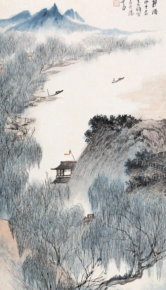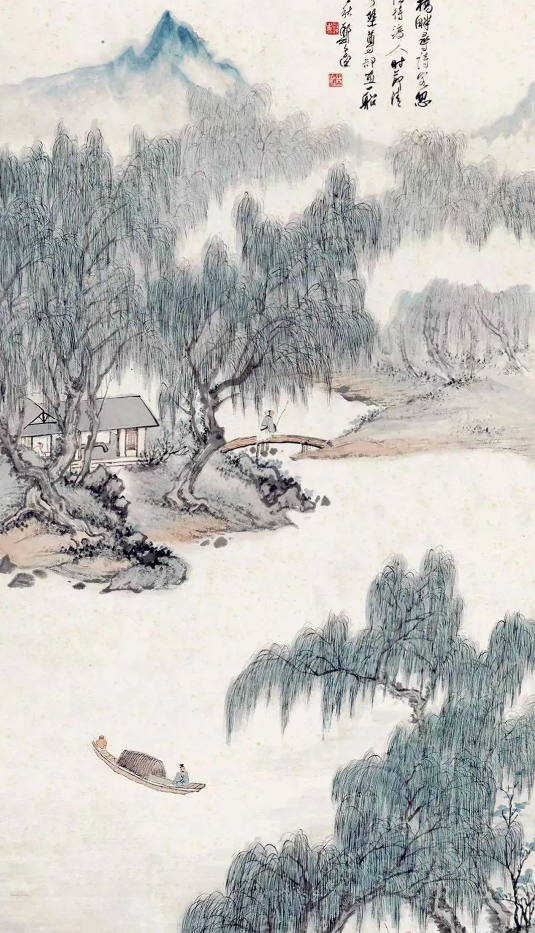 当我们欣赏郑午昌的画作时,仿佛置身于那片充满诗意的山水之间。他的画作,不仅仅是对自然的描绘,更是他心灵的寄托。那柳树的婀娜多姿,那山水的悠远宁静,都在无声地诉说着他对生活的热爱和对艺术的执着追求。他的画作,如同一首首优美的诗篇,让人在欣赏中感受到心灵的宁静与美好。