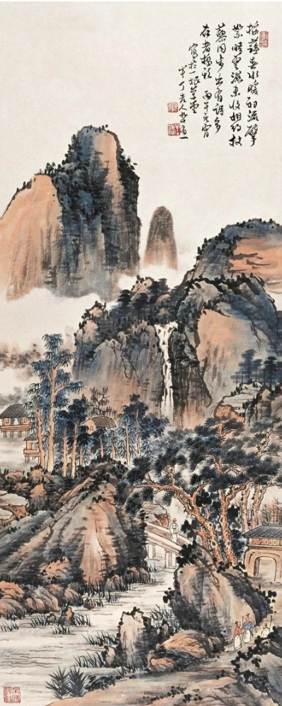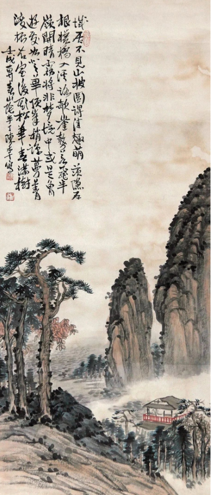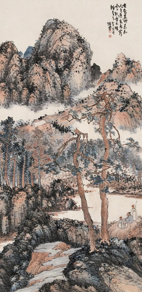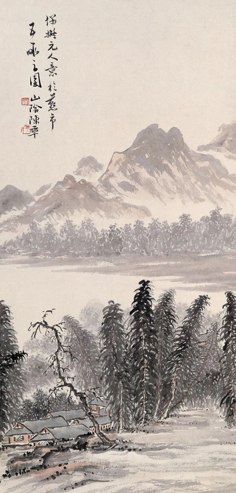 在二十世纪四、五十年代,陈半丁的山水画达到了一个新的高度。他的用笔深沉而有力,墨色润华而不腻,以淡赭、花青为主调,清明洁净,凝重中透出仙逸之气。他的画,宛如一幅幅流动的诗篇,让人在欣赏的瞬间,便能感受到那股从心底涌出的宁静与美好。他的作品,卓然自成一家,仿佛是大自然赋予他的独特语言,诉说着他对世界的热爱与敬畏。