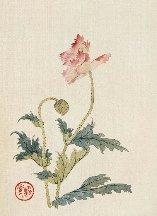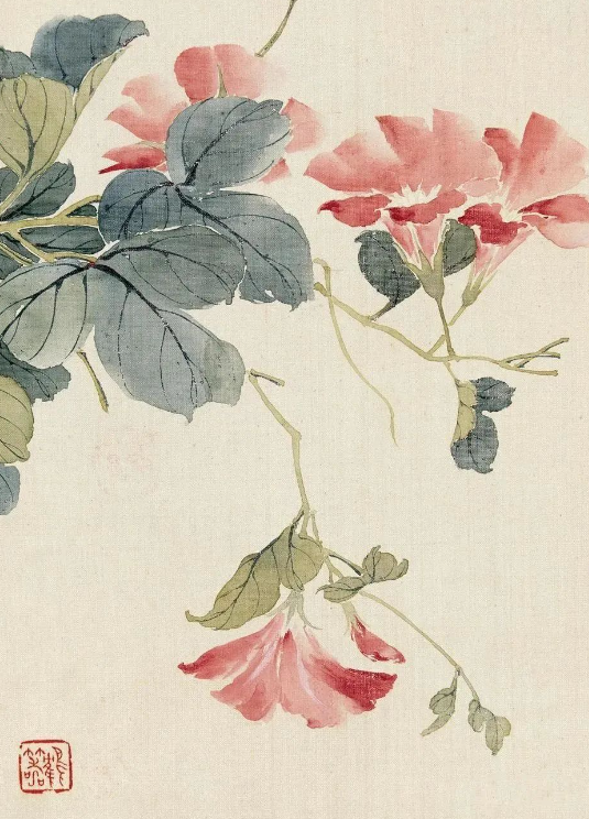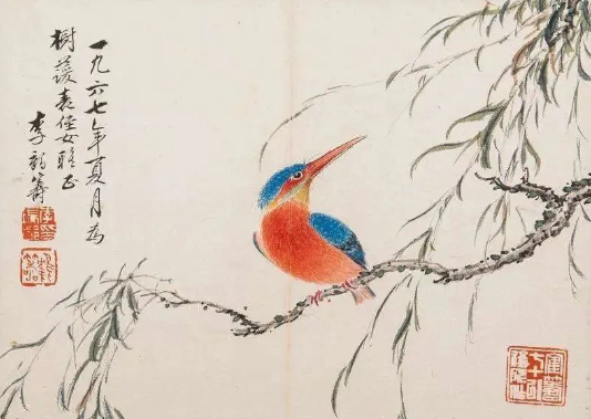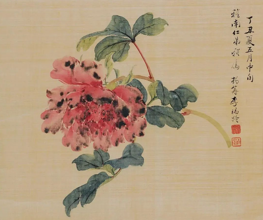 他的花鸟画,是小写意的典范,半工半写之间,既有工笔的精细入微,又有写意的洒脱自如。那画中的芍药,花瓣层层叠叠,仿佛带着晨露的清新,娇艳欲滴;而碧桃则在纸上绽放,似有春风拂过,带着淡淡的香气。他用没骨法画花卉,设色淡雅而滋润,先蘸白粉再调颜色,笔下变化微妙,注水注粉后,花瓣便如水晶般玲珑剔透。那芍药、碧桃,在他的笔下独树一帜,别具一格,如同大自然中最灵动的精灵,被他用画笔定格在永恒的瞬间。
