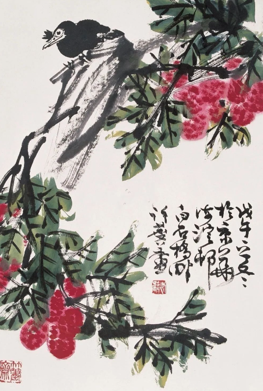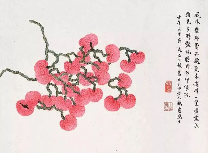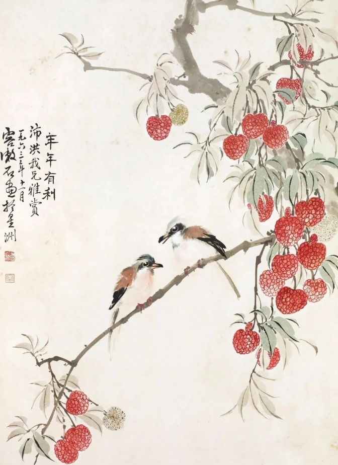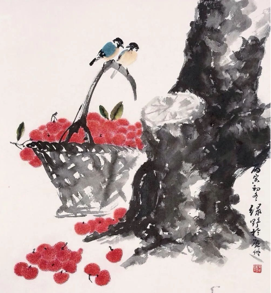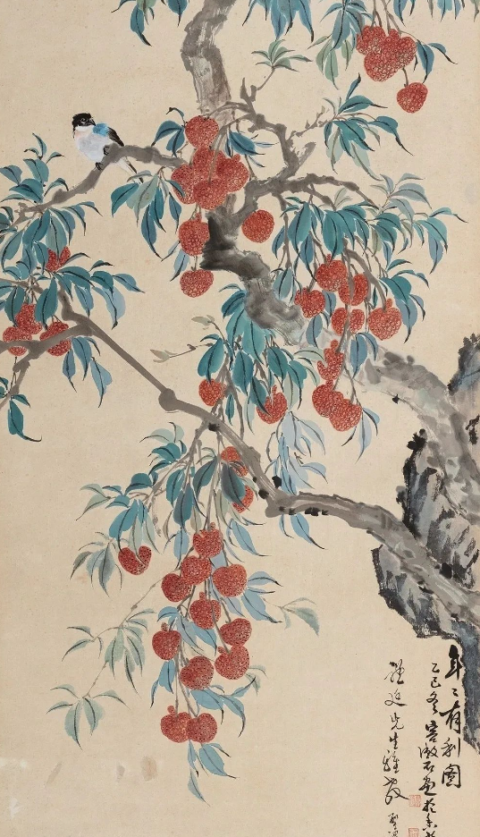 荔枝的“荔”字,谐音“利”,裂开的荔枝,宛如“利势大开”的象征,寓意着吉祥如意、万事胜意。它还承载着“利子”“吉利”“多利”等美好的寓意,这些寓意如同温暖的阳光,照耀着人们的心灵,给予人们无尽的希望与力量。也正是因为这些美好的寓意,荔枝成为了画家们笔下的常客,他们用画笔将荔枝的美定格在画布上,让这份美好得以永恒。