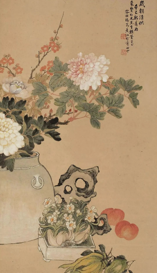 新春之际,以“清供”入画的“岁朝清供图”,在清中后期的书画领域盛行一时。画家们将清供之品巧妙地融入画中,兼工带写,敷演成诗,使之成为图文并茂的文人画。这些画作,不仅仅是对物品的简单描绘,更是画家们对生活的热爱与感悟的表达。他们用细腻的笔触,将天竹果、腊梅花、水仙等冬日里的美好,一一呈现于纸上。隆冬风厉,百卉凋残,而晴窗坐对,眼目增明,这便是岁朝的乐事。