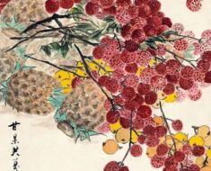 这幅画的色彩,更是清新淡雅至极。画家似乎并未刻意追求浓墨重彩,而是以一种近乎透明的笔触,将果蔬的本色展现得淋漓尽致。那葡萄的晶莹剔透,石榴的红艳欲滴,樱桃的娇小玲珑,都在这淡雅的色彩中,显得格外生动。它们仿佛刚刚从枝头采摘而来,带着自然的温度与光泽,让人感受到一种质朴而纯粹的美。