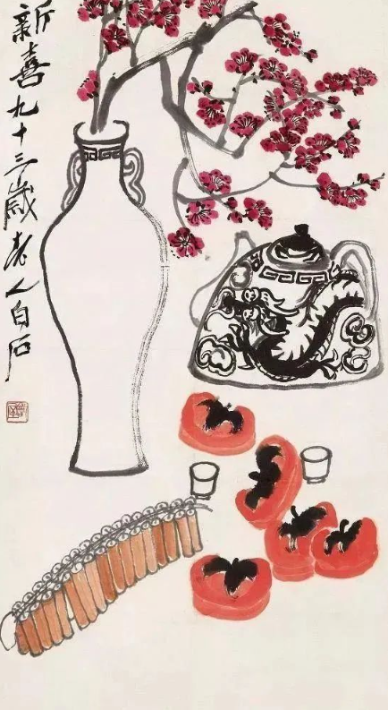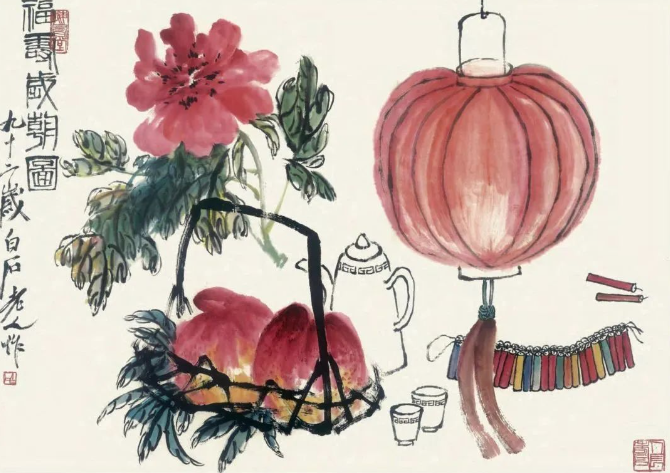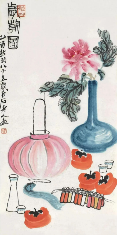 在中国传统绘画的长河中,“岁朝图”宛如一颗璀璨的明珠,承载着人们对新年的美好祈愿与对生活的热爱。而齐白石笔下的《岁朝图》,更是将这一题材推向了极致,成为人们心中温暖而喜庆的象征。