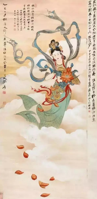 张大千的代表作品众多,其中《荷花图》、《爱痕湖》、《长江万里图》、《秋曦图》等都是他的经典之作。特别是他的荷花画,更是被誉为“大千荷”,对中国花卉画的发展产生了深远影响。他的泼彩山水画也同样出色,如《瑞士亚琛湖》、《长江万里图》等,都展现了他对山水画的独特理解和深厚造诣。