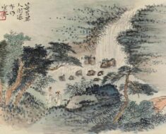 《长松山水图》是南宋画家马麟的传世经典之作,也是南宋院体山水画的代表作之一。这幅画作纵25.1厘米,横26厘米,现藏于美国大都会艺术博物馆。画面以山崖蜿蜒转入山寺的路上为背景,一位高士流连于山水之间,在一株爬满枯藤的古松之下徜徉,仿佛与起伏的远山融为一体,构成了一幅人与自然合而为一的完美景象。