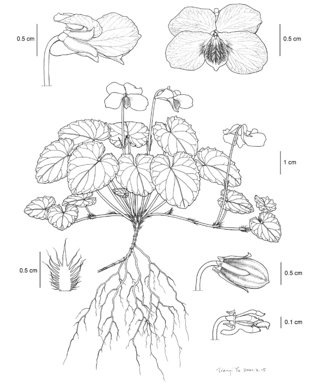世纬堇菜Viola shiweii Xiao C. Li & Zheng W. Wang墨线图
