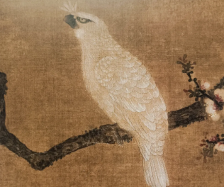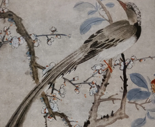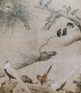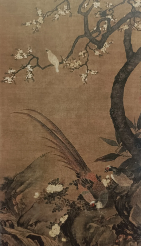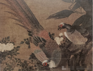 清代画家尤萃的《杏花双雉图》以其山脚坡石之间的流溪如练、幽兰蔷薇各放馨香,以及树下一双雉鸟的翎毛鲜艳、闲庭信步,为我们描绘了一幅和谐美好的画面。