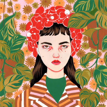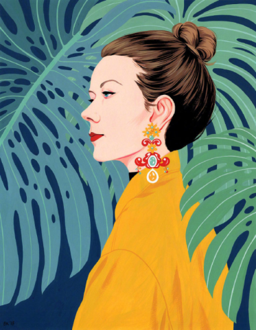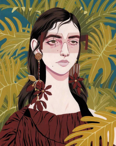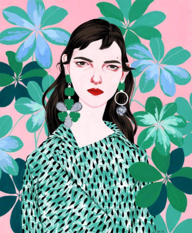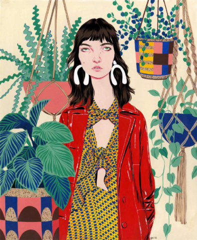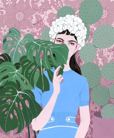 除了女性形象,Karman还热衷于将大自然融入作品中。她善于观察身边的植物,尤其是多肉植物、仙人掌和树叶,将这些美丽的元素转化为笔下的插画。这些植物与女性的形象相互交织,形成了一种独特的视觉效果,令人陶醉。
