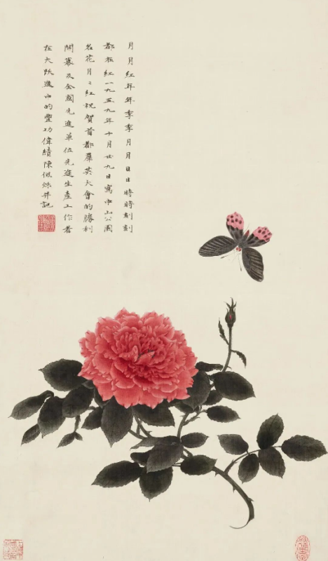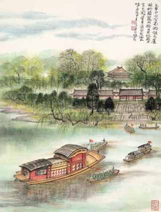 陈佩秋在花鸟、山水、工笔画、书法等方面都取得了极高的成就,被誉为“卧枕宋元、融汇中西”。她早年以山水为起点,50年代后专攻花鸟,画风浓丽秀美,格调委婉含蓄。90年代开始,她探索细笔青绿山水,大量吸收西画光、色的表现技巧,开创了彩墨结合的中国画新风。她的艺术创作出入古今之间,做到了“笔墨当随时代”,载入中国近代绘画史册,并将中国女性画家的绘画成就抬升到了新的高度。