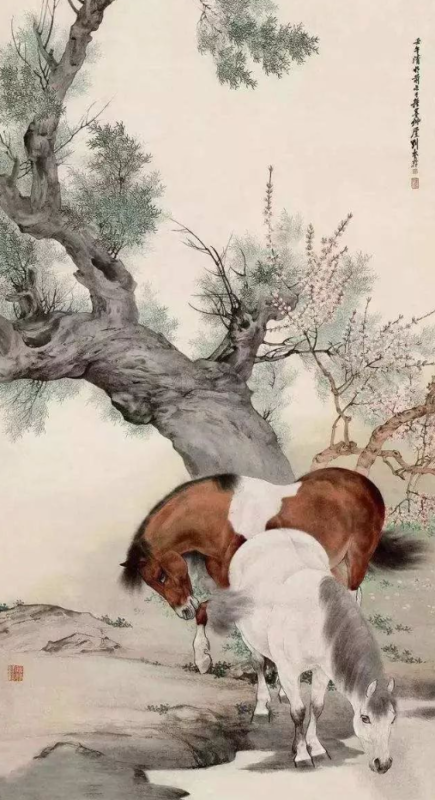 刘奎龄的艺术成就不仅在于技法的高超,更在于他对艺术的执着追求和不断创新。他孤身前行,语讷志坚,其创作恰与徐悲鸿的“尽精微,致广大”契合。他钟情于日本绘画,关注横山大观和竹内西凤等代表性人物,学习借鉴朦胧派、狩野派、大和绘、汉画等古典技法精粹。