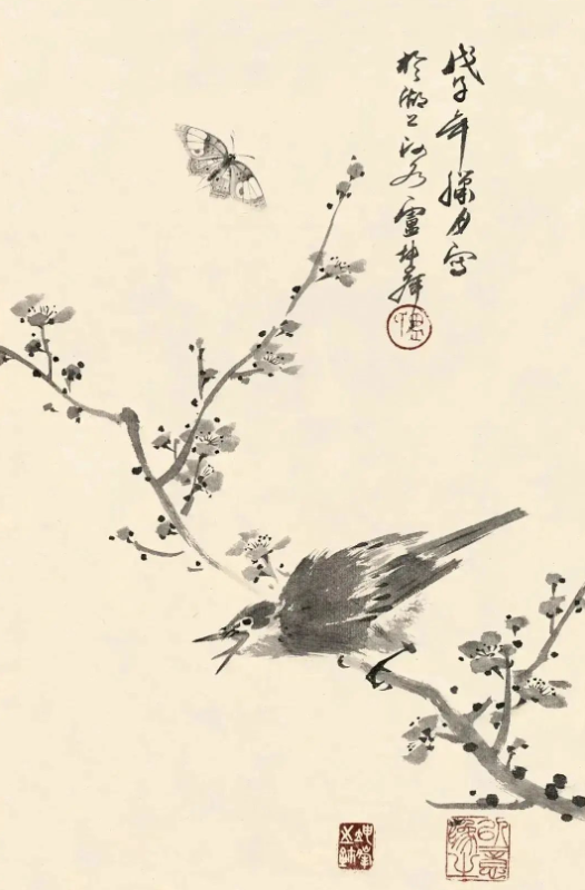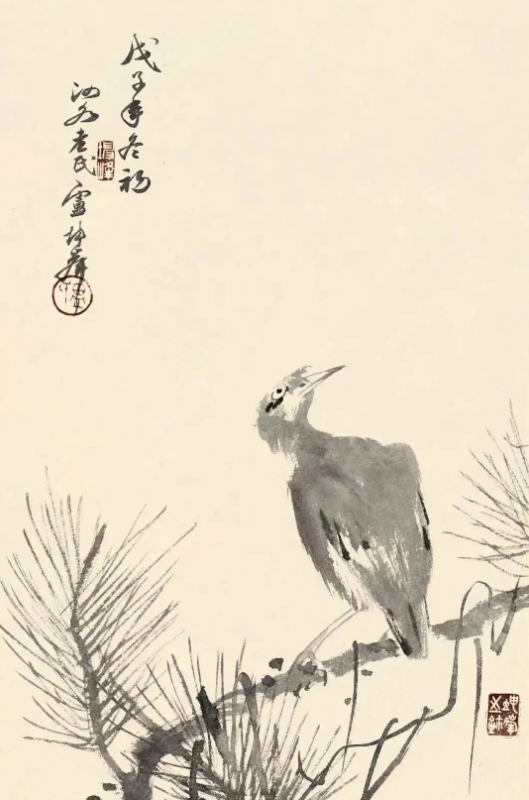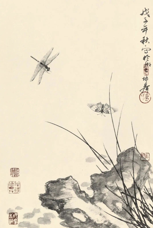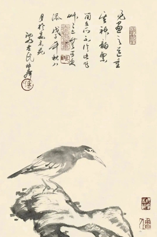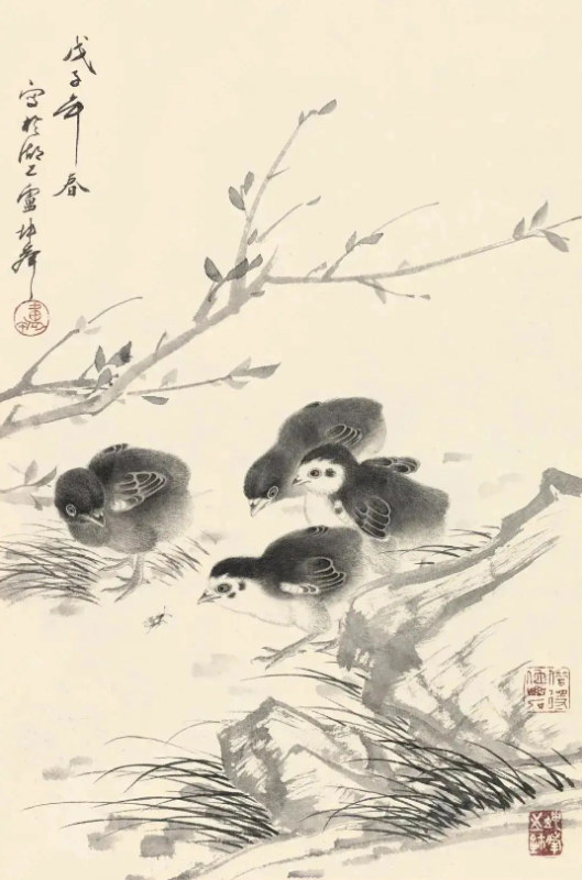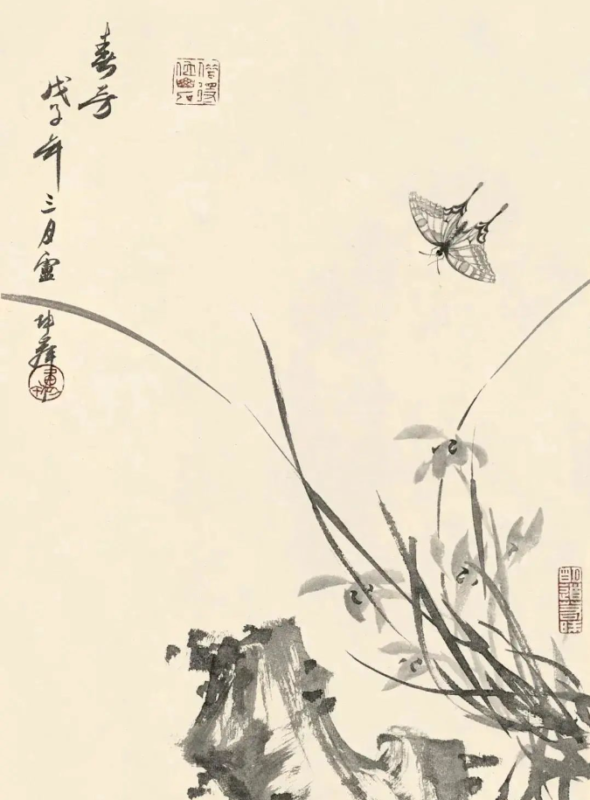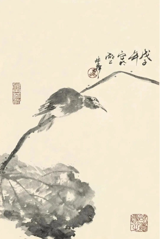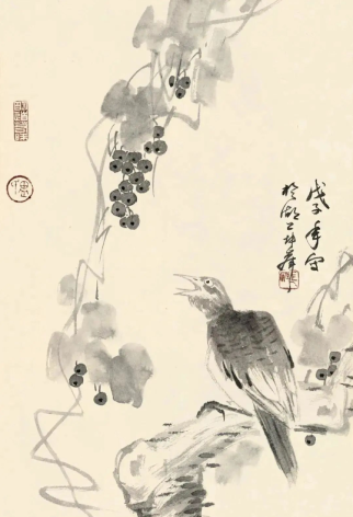 尤为值得一提的是,卢坤峰先生在继承宋代以来花鸟画优良传统的基础上,巧妙地融入了个人对自然的独特见解和艺术追求。他运用娴熟的笔墨技巧,无论是勾勒花瓣的轻盈、羽毛的细腻,还是描绘竹叶的疏密、兰叶的飘逸,都能做到既精微又大气,既展现了对象的形态之美,又传达了超越物象的精神境界。这种对笔墨的精准掌控和意境的深远营造,无疑是对古人艺术精神的一种深刻理解和传承。