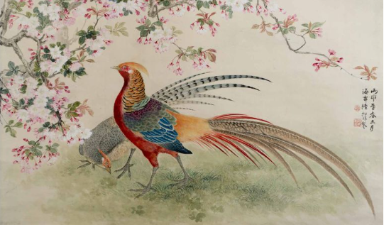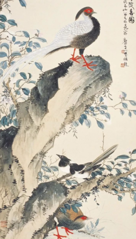 海棠锦鸡 68cm× 114cm 1956 年 杭州芸廷美术馆藏