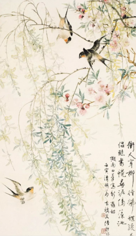 桃柳燕子 101cm×52cm 1962 年 常熟博物馆藏