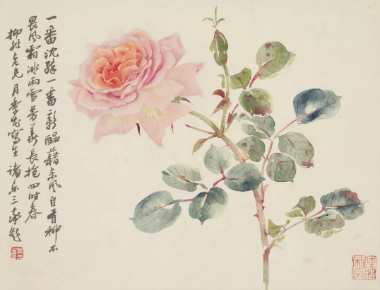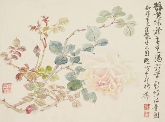 月季册页之二 26cm×34cm 1959 年 (夏承焘题)