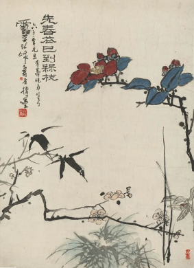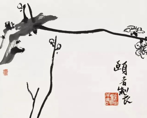 潘天寿 先春花已到梅枝