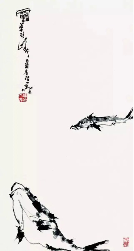 潘天寿 鱼乐图轴 水墨设色