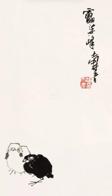 潘天寿 双鸡图