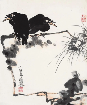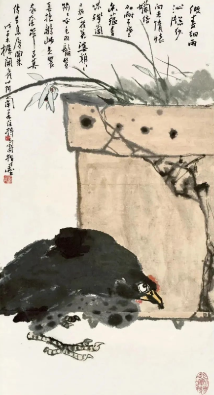 潘天寿 盆兰墨鸡