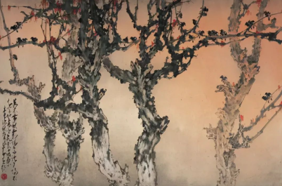 赵少昂《群鸟话夕阳》(国画),1961年广州艺术博物院藏