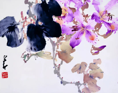 赵少昂《紫荆金龟》(国画),1941年岭南画派纪念馆藏