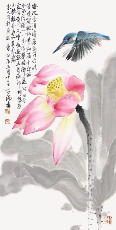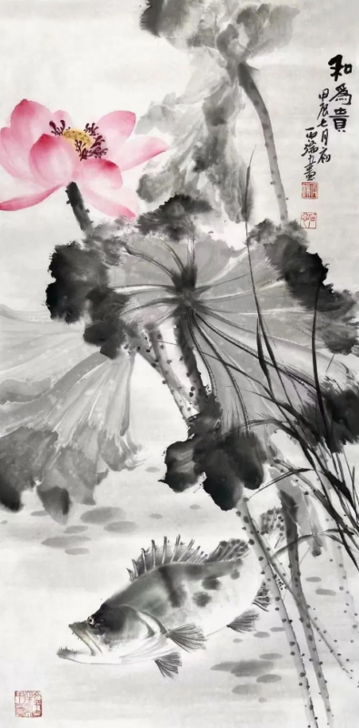 在国画的世界里,郭丙端笔下的荷花无疑是一道独特的风景线。他以笔墨为媒介,将荷花的神韵展现得淋漓尽致,每一幅作品都仿佛是一首无言的诗,诉说着荷花的高洁与清雅。