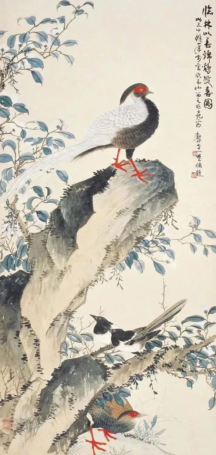 他的工笔画,有着宋元遗风的清雅隽秀,却又全然没有一丝一毫的刻板与呆滞。线条流畅如行云流水,色彩明快如春日朝阳,即使是简单的双勾白描,也透着令人心醉的灵动与意趣。他仿佛是一位精通百乐器的演奏家,将工笔、没骨、兼工带写、大写意等多种画风融汇贯通,挥洒自如,最终形成了自己独一无二的艺术语言。晚年的他,更是在笔墨中融入了书法的精髓,笔触苍茫,色彩明丽,如同一位饱经沧桑的智者,用生命本身在诉说着故事。
