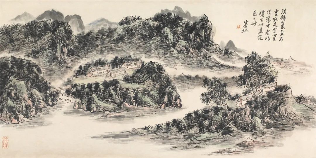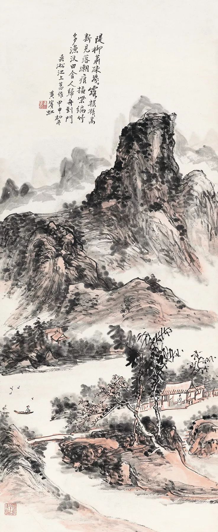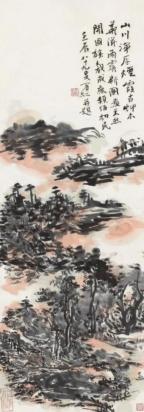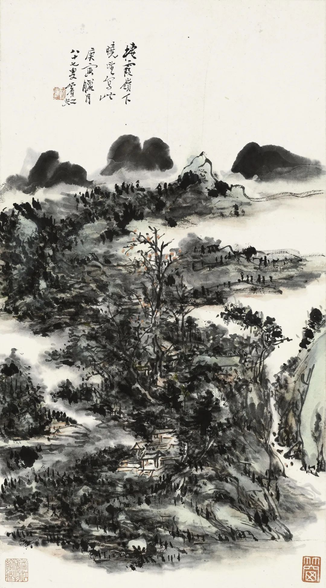 细品黄宾虹的山水画,你会发现,那墨色并非单调的黑色,而是蕴藏着无限的层次和变化。淡墨轻染,如云烟缥缈,给人以空灵之感;破墨飞溅,似雨后山岚,展现着生命的勃勃生机;积墨凝重,如同历史的厚重感,让人感受到时间的沉淀和岁月的沧桑。他那精妙的“五笔七墨”技法,更是在传统的基础上,开创了新的境界。每一点、每一笔,都饱含着深情,都像是跳跃的音符,奏响着天地间的交响乐章。