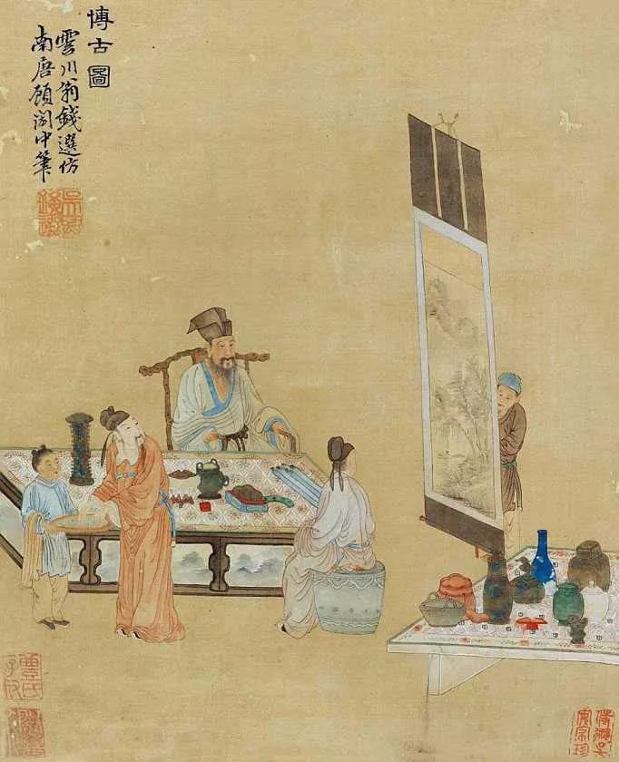 钱选的《博古图》,则展现了他博古通今的学识和对古物独特的审美。画面上,各种古玩器物错落有致,细节精妙,仿佛在向我们诉说着古老的故事。