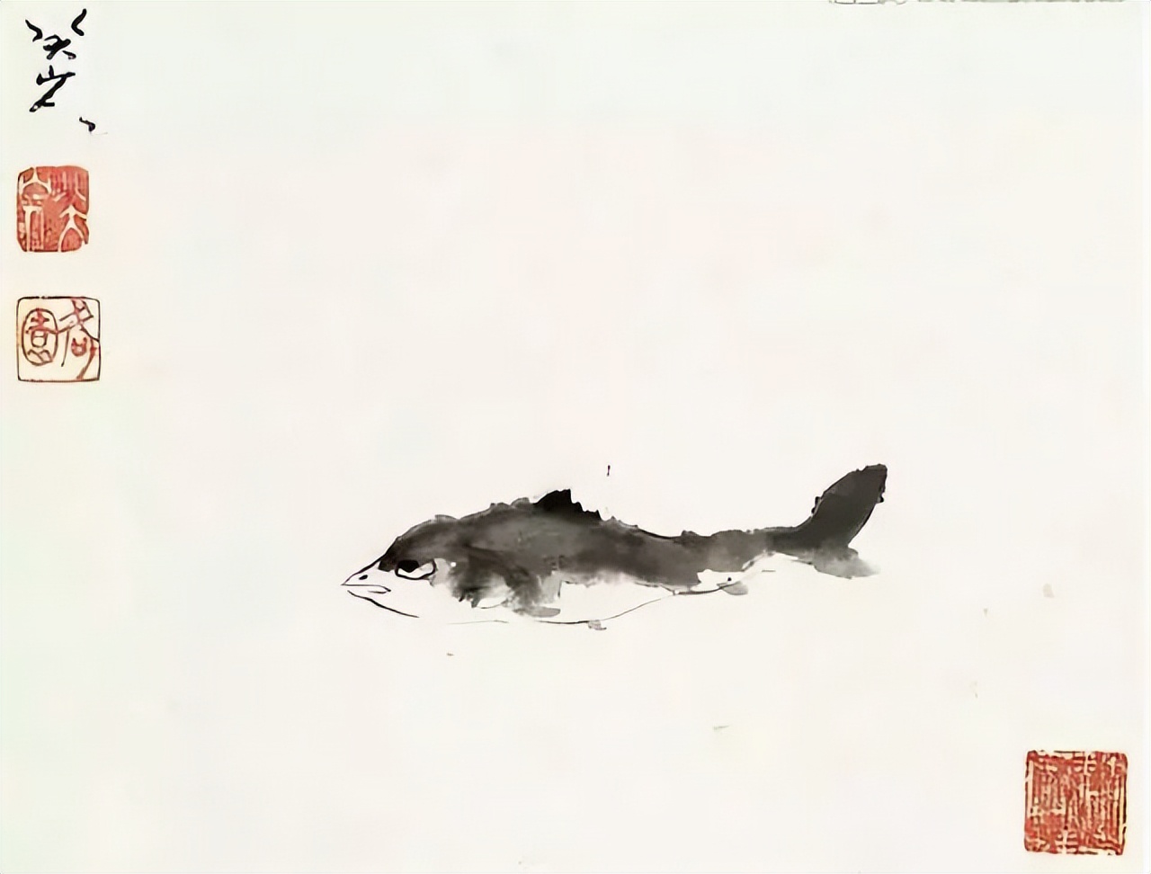 那些看似随意点染的墨迹,却蕴含着巨大的张力。一只孤傲的鸟,栖息在枯瘦的枝头,眼神里是看破红尘的寂寥;一尾游鱼,在空旷的水面缓缓游动,仿佛承载着无尽的忧思; 几笔粗犷的山石,勾勒出苍茫的意境,诉说着人世的变迁。 他的笔触,是颤抖的,是挣扎的,却又带着一种超脱世俗的洒脱。