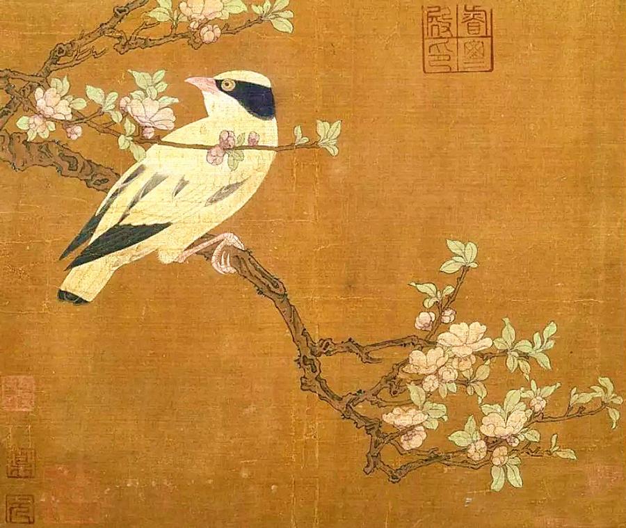 五代时期,黄筌与徐熙两位大师的出现,如同两颗耀眼的星辰,划破了花鸟画的天际。黄筌笔下,富丽堂皇,金碧辉煌,仿佛宫廷盛宴的华丽景象;而徐熙则以其“野逸”之风,独树一帜,将自然界的野趣与灵秀,毫无保留地呈现在绢素之上。他的《桃花黄鹂图》,笔触轻盈,色彩明快,黄鹂鸣叫声似乎就在耳边回响,桃花的娇艳欲滴,令人沉醉。而那几笔勾勒出的枝干,更是妙不可言,仿佛蕴含着生命蓬勃的力量。他的“落墨法”,更是为后世花鸟画的发展,指引了方向。